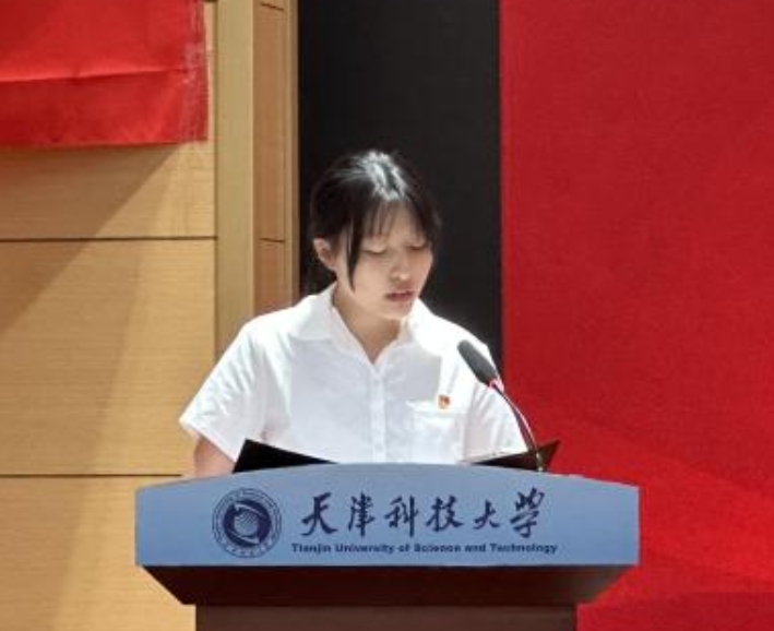 “我志愿加入中国共产党……”在铿锵有力的宣誓声中,全体与会党员重温入党誓词,以铮铮誓言唤醒入党初心。本科毕业生党员代表高明英、研究生毕业生党员代表任璐先后登台发言。高明英深情回顾在校期间党组织的培养,分享了自身将专业知识与志愿服务相结合的实践经历,展现了党员的责任与担当;任璐则以“牢记初心,砥砺前行”为主题,号召毕业生党员在新征程上,无论深耕科研领域,还是投身基层一线,都要以党员标准严格要求自己,用实际行动践行“请党放心,强国有我” 的青春誓言。两位代表的发言情真意切,引发了在场党员的强烈共鸣。