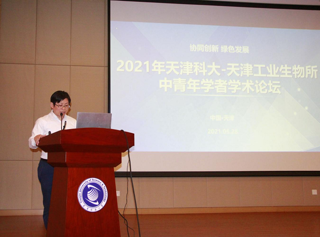、工业发酵微生物教育部/天津市重点实验室、食品营养与安全和药物化学国际科技合作基地、省部共建食品营养与安全国家重点实验室、天津市工业生物系统与过程工程重点实验室、天津市生物催化技术工程中心、天津市微生物代谢与发酵过程控制技术工程中心共同承办的以“协同创新·绿色发展”为主题的“2021年天津科大-天津工业生物所中青年学者学术论坛”在小妲己直播