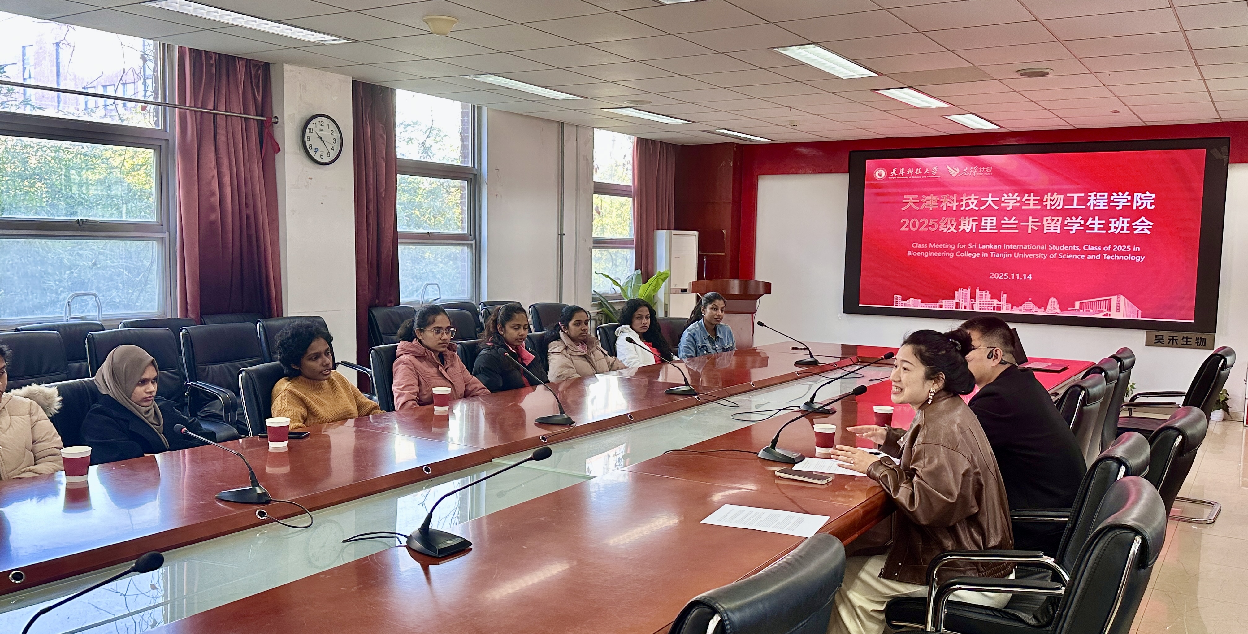 2025级斯里兰卡生物工程全英文班首次班会于11月14日在滨海校区2号楼208会议室顺利举行。2025级斯里兰卡生物工程全英文班班导师吕晓彤、辅导员赵华民、留学生班助犹然以及2025级全体斯里兰卡新生共同参加。