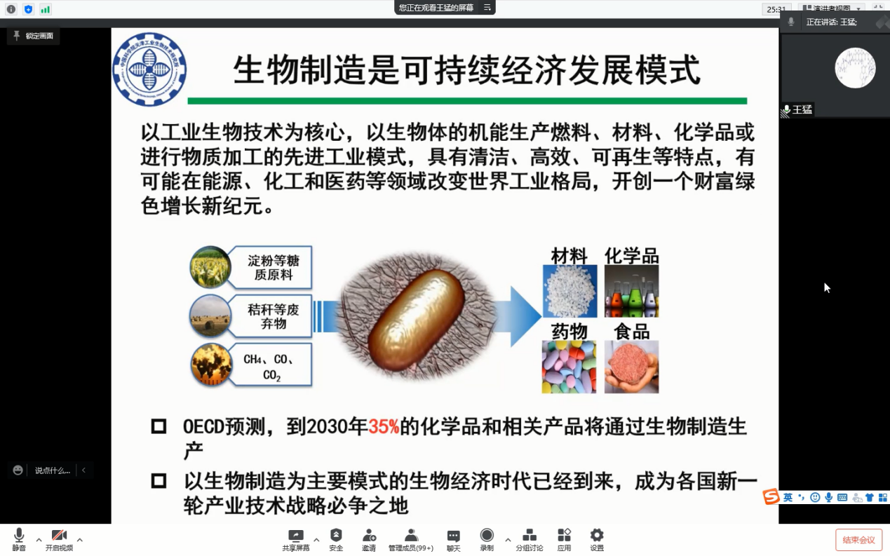 积极配合学校开展“科技赋能,‘疫’路相伴”系列云端讲座,特邀请中国科学院天津工业生物技术研究所王猛研究员于1月27日在云端做学术报告。本次讲座由小妲己直播