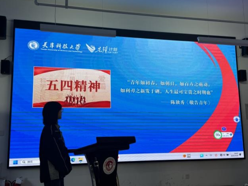 生工第一学生社区生物工程本科生第一党支部党员、2022级生物工程卓越人才实验班团支部团员蒋雯杰、甘延林面向塘沽湾学校少先队员开展“弘扬五四精神,共创青春未来”主题宣讲,详细讲述了中国共产主义青年团自成立以来,一直是中国青年运动的核心力量,在推动中国社会进步和青年成长方面发挥了不可替代的作用。随后通过精选的视频资料,向少先队员们展示了在巴黎和会上中国外交失败后,1919年5月4日发生在北京的一场以青年学生为主,广大群众、市民、工商人士等阶层共同参与的爱国运动,这是中国人民彻底的反对帝国主义、封建主义的爱国运动。通过主题宣讲和观看视频,教育引领广大青少年不负青春,不负韶华,承担起历史赋予的责任,为中华民族伟大复兴作出贡献。