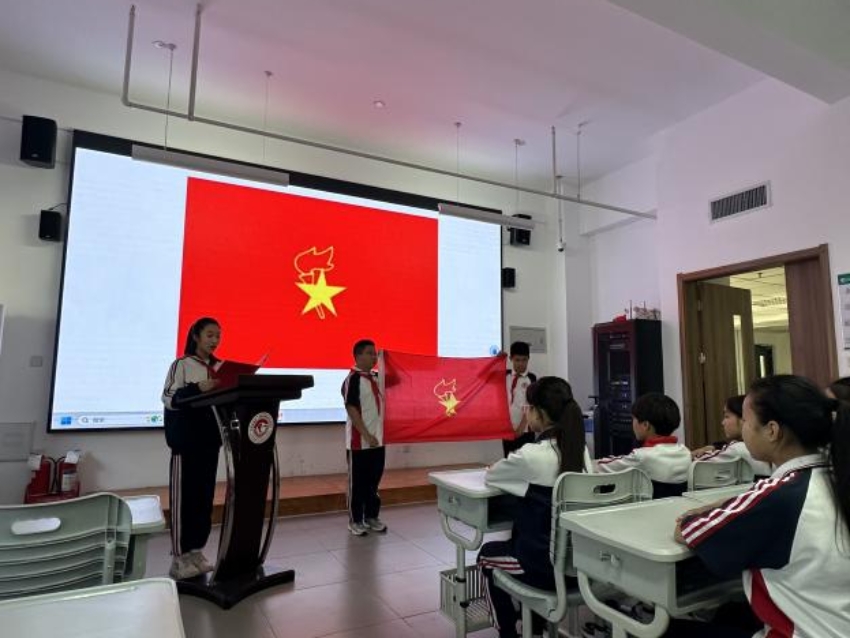 生工第一学生社区生物工程本科生第一党支部党员、2022级生物工程卓越人才实验班团支部团员王绍涵在团旗下讲话,滨海新区塘沽湾学校少先队员郭佳怡在中国少年先锋队队旗下发表讲话,都深情表达了对党、对祖国、对中国特色社会主义事业的忠诚热爱与坚定信念,充分展现了青年一代的的朝气、使命与担当。少先队员们重温入队誓词,并满怀热情地再次唱响中国少年先锋队队歌,激发了强烈的民族自豪感、责任感和使命感。