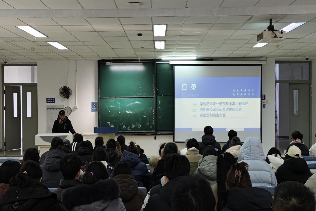 提前谋划、多措并举,开展了全方位、多层次的寒假前安全教育系列工作,为学生假期安全筑牢坚实屏障。在学院统筹安排下,各年级辅导员结合学生群体特点,以年级为单位,通过线下主题班会、线上提醒通知等多种形式,开展全覆盖式安全教育,为同学们送上“安全锦囊”。