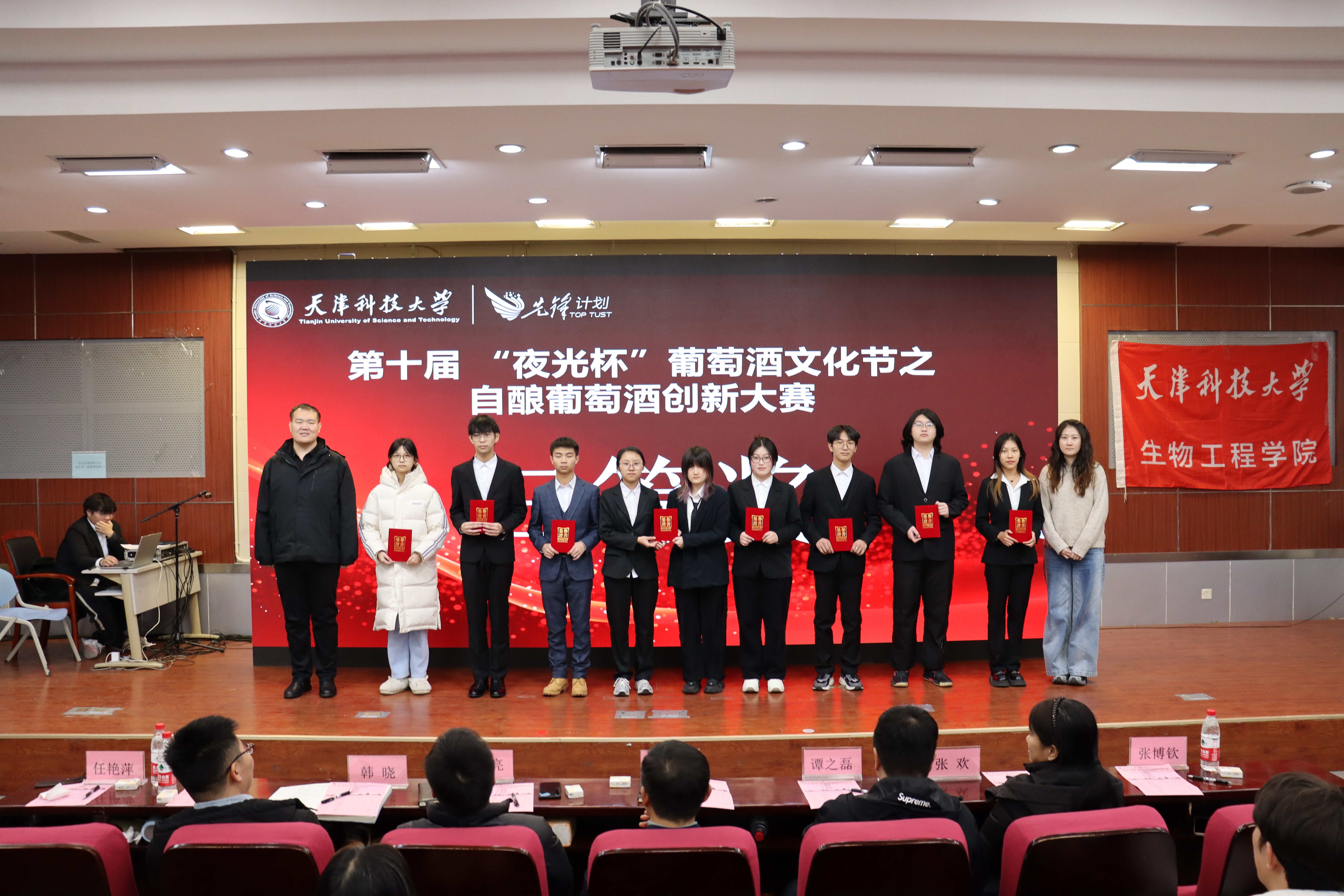 经过激烈的比拼和评委们严谨细致的评审,最终评选出一等奖2组、二等奖5组、三等奖8组。这些获奖团队凭借扎实的专业知识、精湛的酿造技艺、独特的创意构思和出色的团队协作精神,为本次大赛画上了圆满而精彩的句号,也为全校师生呈现了一场高水平、高质量的葡萄酒文化盛宴,充分展示了小妲己直播