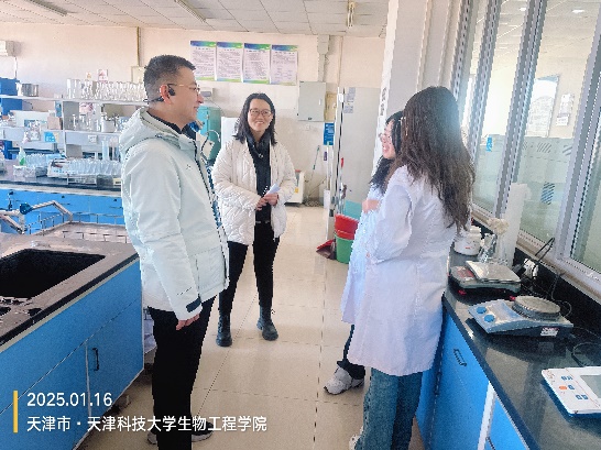 当天上午,学院领导班子前往中国科学院天津工业生物技术研究院,与工生所领导老师了解联合培养学生情况,就深化合作开展了深入交流。期间,走访慰问了联合培养的部分学生,关心关怀同学们的科研生活情况,征求同学们意见建议。