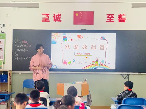 志愿者充分发挥专业知识,通过大中小学校思政一体化建设模式,助力课后服务工作,开展生物知识主题教育实践活动,在小学生的内心种下生物知识的种子,激发了孩子们的好奇心和求知欲,为培养同学们的科学思维和创新精神打下了良好的基础。