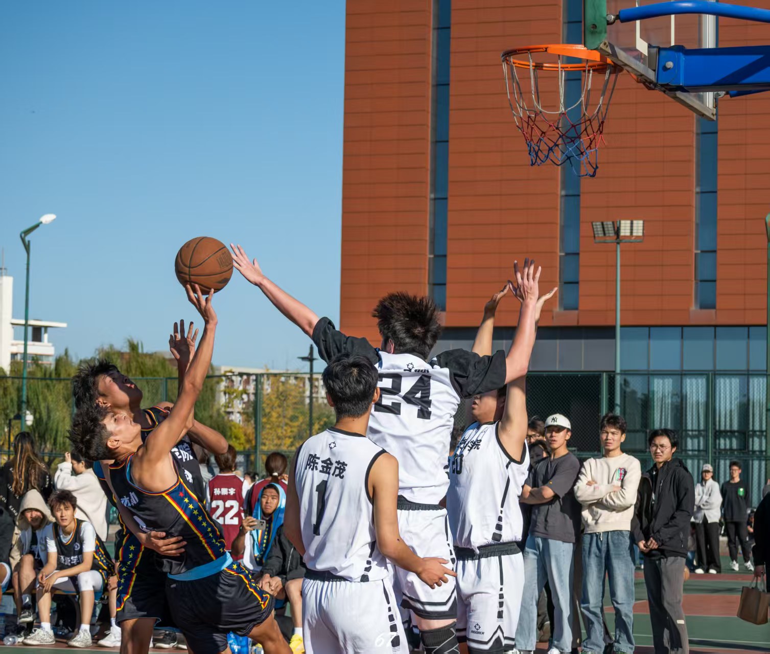 2025年阳光体育运动之“新生杯”篮球赛决赛在滨海校区中院篮球场举行,我院男篮和经管与管理学院男篮展开角逐。随着决赛开始的哨声响起,双方展开激烈的角逐,双方球员以精准的传球、犀利的突破和精彩的配合为观众呈现了一场精彩的决赛,小妲己直播