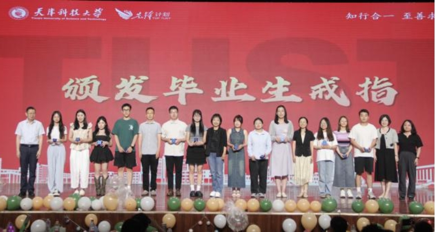晚会上,进行了优秀毕业生表彰和毕业生戒指颁发仪式,对表现突出、成绩优秀的同学进行了表彰和奖励,鼓励他们在未来的道路上继续前行、再创佳绩,并为每位毕业生赠送了象征着毕业生身份的戒指,寓意着他们即将踏上新的人生旅程。毕业生代表李欣悦回顾大学四年与同学朋友相互陪伴的经历,表达了对母校的四载培养感激之情,也向同学们表达了对未来的期望和祝福。毕业生代表史京辉立足大学四年的每个“瞬间”,话语之中是对每一场全力以赴的满怀期待,期待和同学们一起追逐先锋,成为先锋,勇敢地担当起时代赋予的责任。