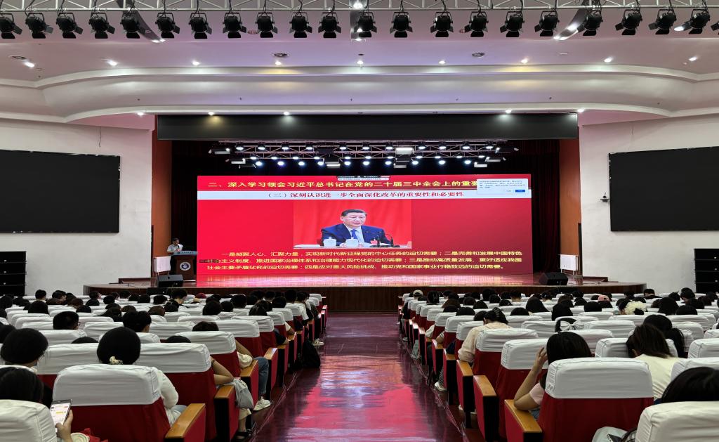 杜岩刚书记首先深入解读了深刻认识党的二十届三中全会的重大意义,并从五个“深刻认识”入手,深入学习领会习近平总书记在党的二十届三中全会上的重要讲话精神,用“五个注重”对决定稿内容摆布的特点作出深刻阐释。