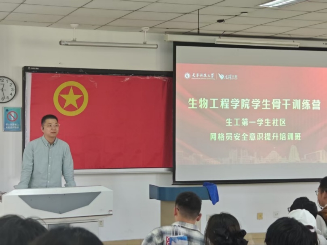 赵华民结合校园安全相关规定,介绍了校园常见的交通、宿舍、网络安全等方面的预防措施,强调学生骨干要带头做好卫生大扫除,保持宿舍和实验室环境干净整洁,要求网格员落实“隐患发现-上报辅导员-及时整改”闭环机制,切实履行“安全前哨”的职责。