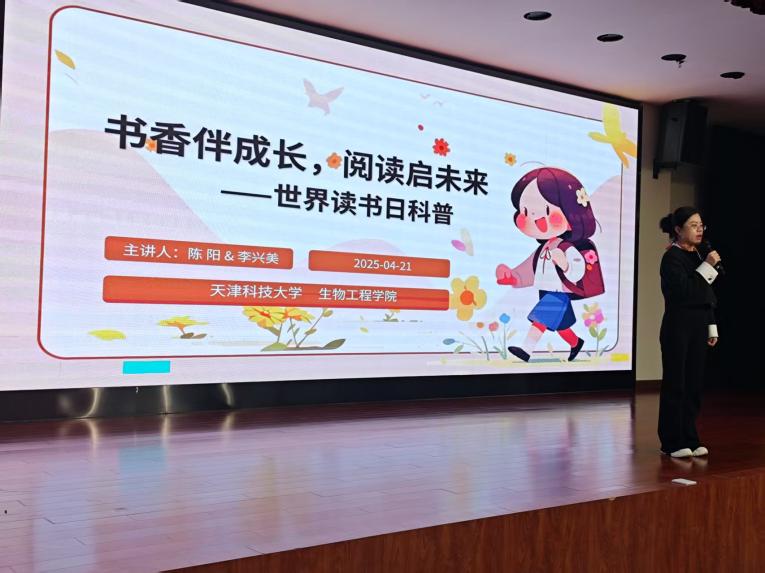 研究生、天津经开区蓝天救援队志愿者陈阳,以西班牙“玫瑰与书”的浪漫传说为切入点,通过趣味故事与图文展示了世界读书日的起源及其深远的全球文化意义。随后,她沿着历史脉络介绍书籍的演变,巧妙串联起中华文明演进与科技发展的轨迹。讲解过程中,陈阳分享了古今中外的阅读趣闻,以生动的讲述激发了青少年对阅读的浓厚兴趣,引导学生们深入思考读书的重要意义。