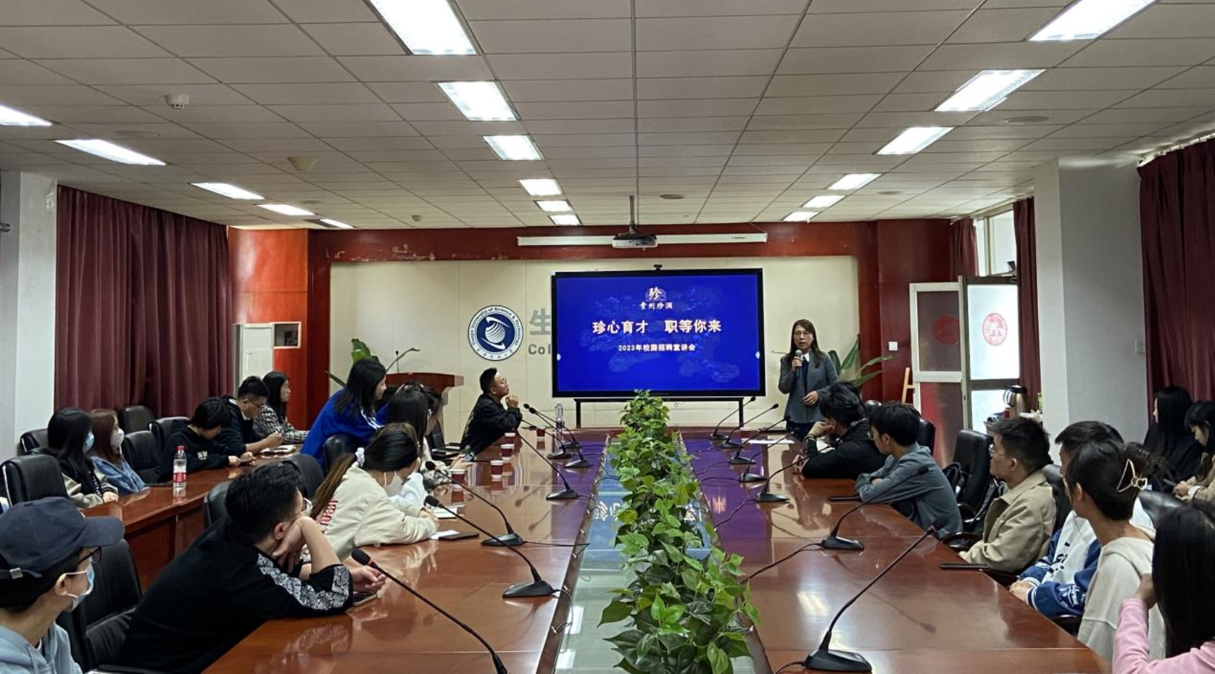 座谈结束后现场气氛活跃,毕业生同学们纷纷就招聘相关问题进行咨询,珍酒公司唐总一行人现场为同学们解疑答难,鼓励同学们充分利用好岗位资源,积极选择高质量就业机会。