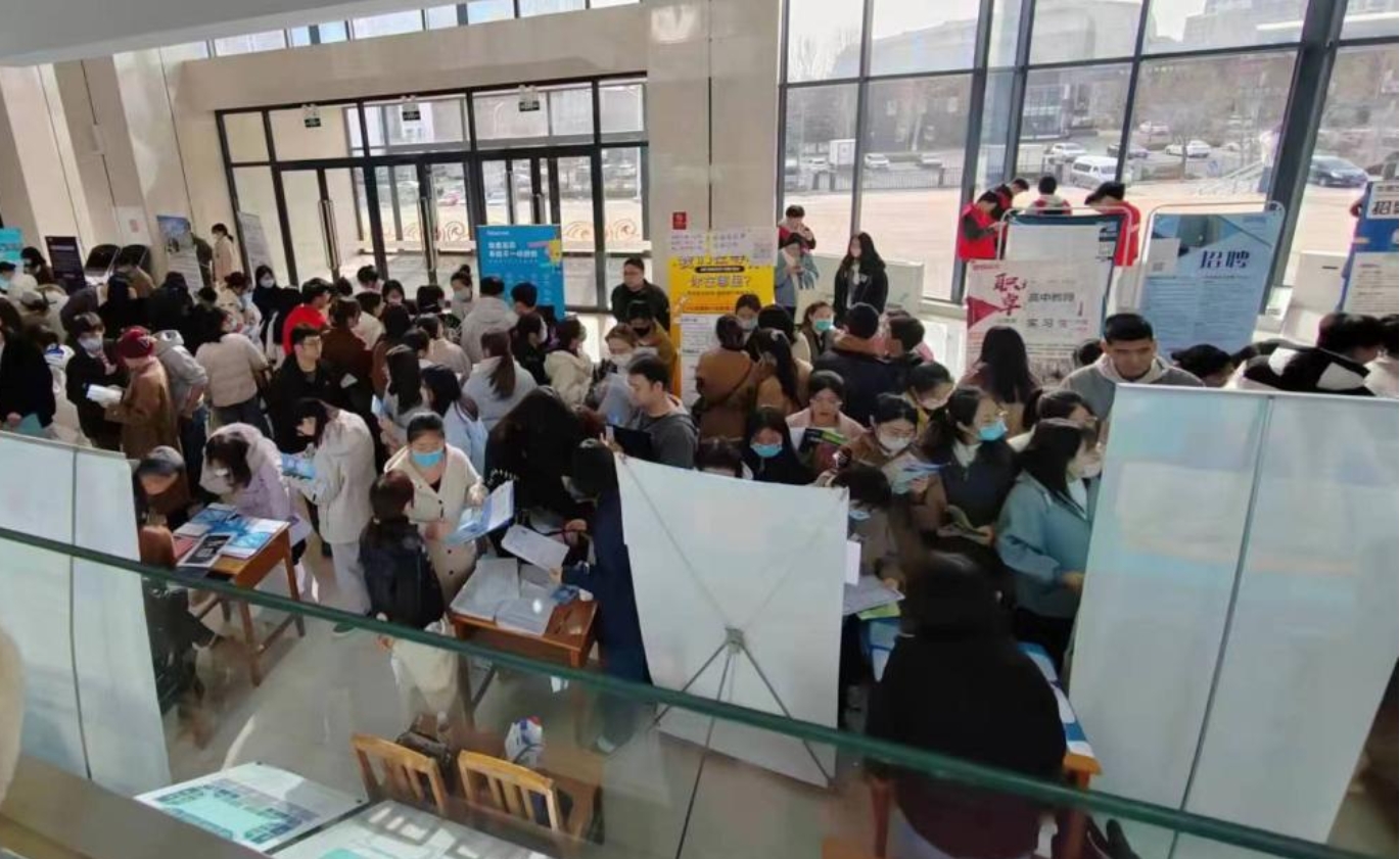 2023年春季专场招聘会在滨海中校区体育馆举行。本次招聘会吸引了来自华熙生物科技(天津)有限公司、浙江震元制药有限公司、中科蓝海(天津)科技有限公司等56家生物医药类企业参加,来自全校相关专业的1000余名学生来到招聘会现场,询问岗位需求、投递个人简历。