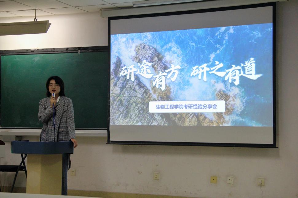 有志于考研学生参加分享会,会议由2020级本科生辅导员周丽媛主持。